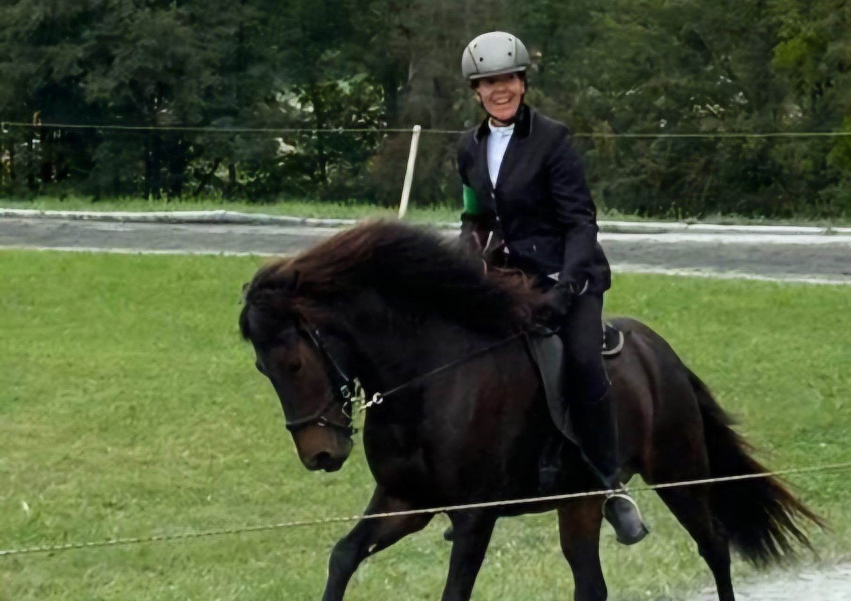 Des Weiteren wurde unser Mitglied Kerstin Reißmann für die Vizeweltmeisterin in der T2 geehrt. Sie ist die Züchterin und Besitzerin der Stute Króna von der Hartmühle (geb. 2014, V:Grimur frá Efsta-Seli, M: Mila vom Ellenbach). Unter der Reiterin Susanne Birgisson erreichte Króna die Höchstnote von 8,43 in der T2.